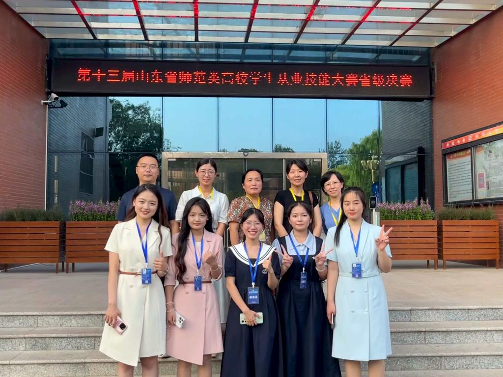 7月16日至20日,山东省第十三届师范类高校学生从业技能大赛在齐鲁师范学院举行。太阳成集团tyc33455共8名同学参赛,包括学前教育学段、小学教育学段数学、语文、英语三个学科。同学们凭借扎实的专业素养和出色的现场表现,最终斩获一等奖2项、二等奖4项、三等奖2项。